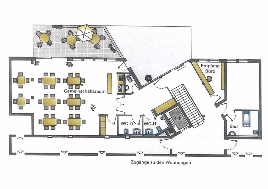 Gemeinschaftsräume mit diversen Freizeitangebote oder Veranstaltungen.